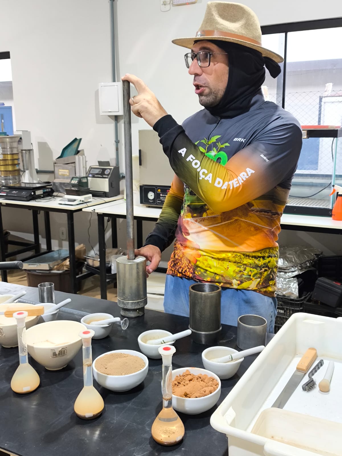 A atividade foi conduzida pelo professor Dr. Marcelo Crestani Mota e teve como objetivo demonstrar, na prática, como esses fatores influenciam a infiltração de água, a porosidade e o desenvolvimento das raízes, especialmente em solos com maior teor de argila.